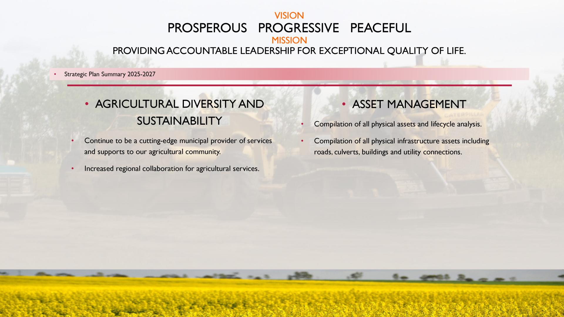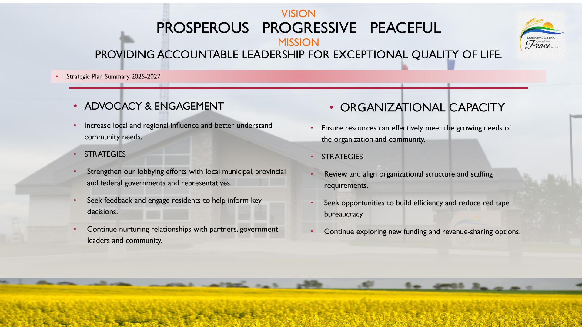 Council has adopted a Strategic Plan for 2025-2027, intended to be a living document which will be reviewed annually to ensure it continues to capture the priorities of Council. The Strategic Plan identifies the six main pillars (priorities) of Council: