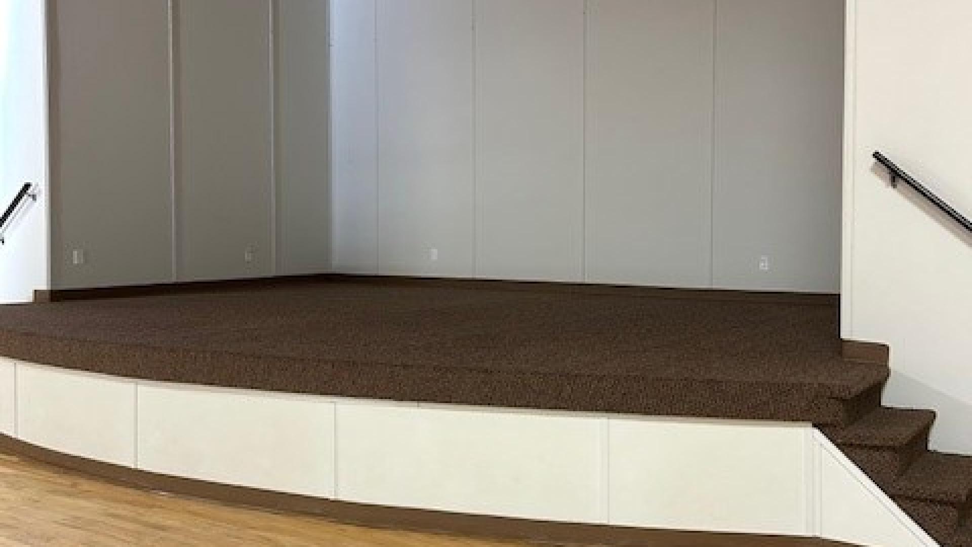 The hall has attached bathrooms with hot water, and a small stage is located at one end of the hall. In 2016 the hall was further renovated by updating the bar, storage areas, and the interior of the hall itself. In 2017 the bathrooms were renovated as well as the front entry, which is now wheelchair accessible. There are 30 new 5-foot round tables, 250 stacking chairs with dollies, as well as a few rectangular folding tables for rental use.