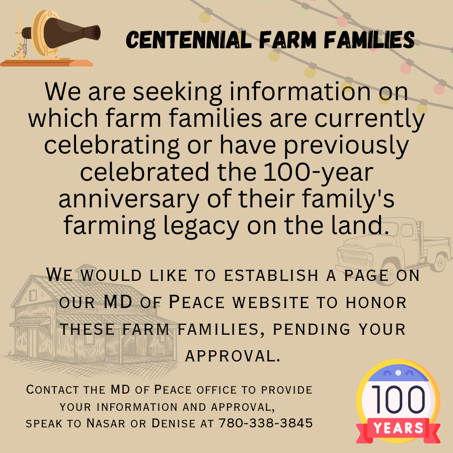 We would like to establish a page on our MD of Peace Website to honor these farm families, pending your approval.