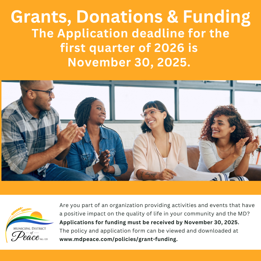 In accordance with MD of Peace No. 135 Fire Protection Bylaw 6/2025 section 12, and under the Forest and Prairie Protection Act, a Fire Control Order is now in effect for lands within MD of Peace No. 135 Jurisdiction located outside the Forest Protection Area.