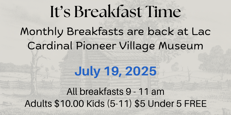 Breakfast at the Lac Cardinal Pioneer Village Museum July 19, 2025 9:00 - 11:00 am