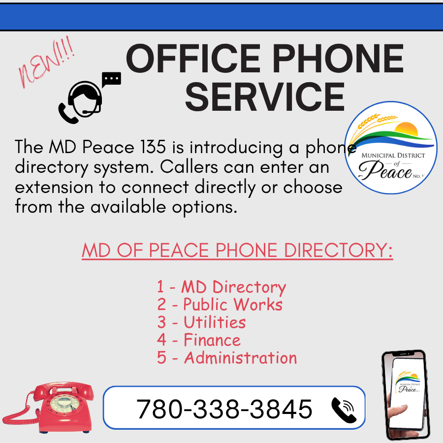 The MD of Peace 135 office is introducing a phone directory system. Callers can enter an extension to connect directly or choose from the available options.