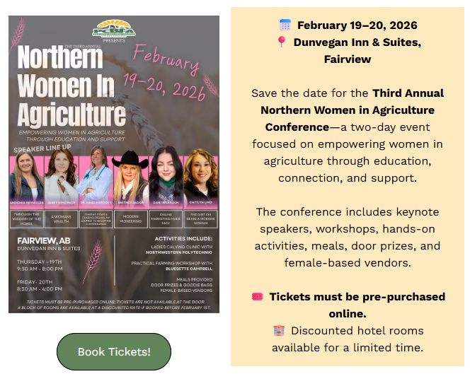 • Northern Women in Agriculture - February 19-20, 2026, in Fairview at the Dunvegan Inn & Suites