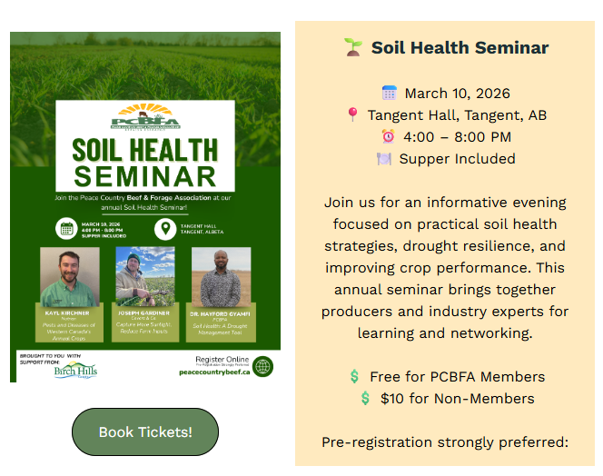 • Soil Health Seminar - March 10, 2026 from 4:00 pm - 8:00 pm - in Tangent, AB at Tangent Hall
