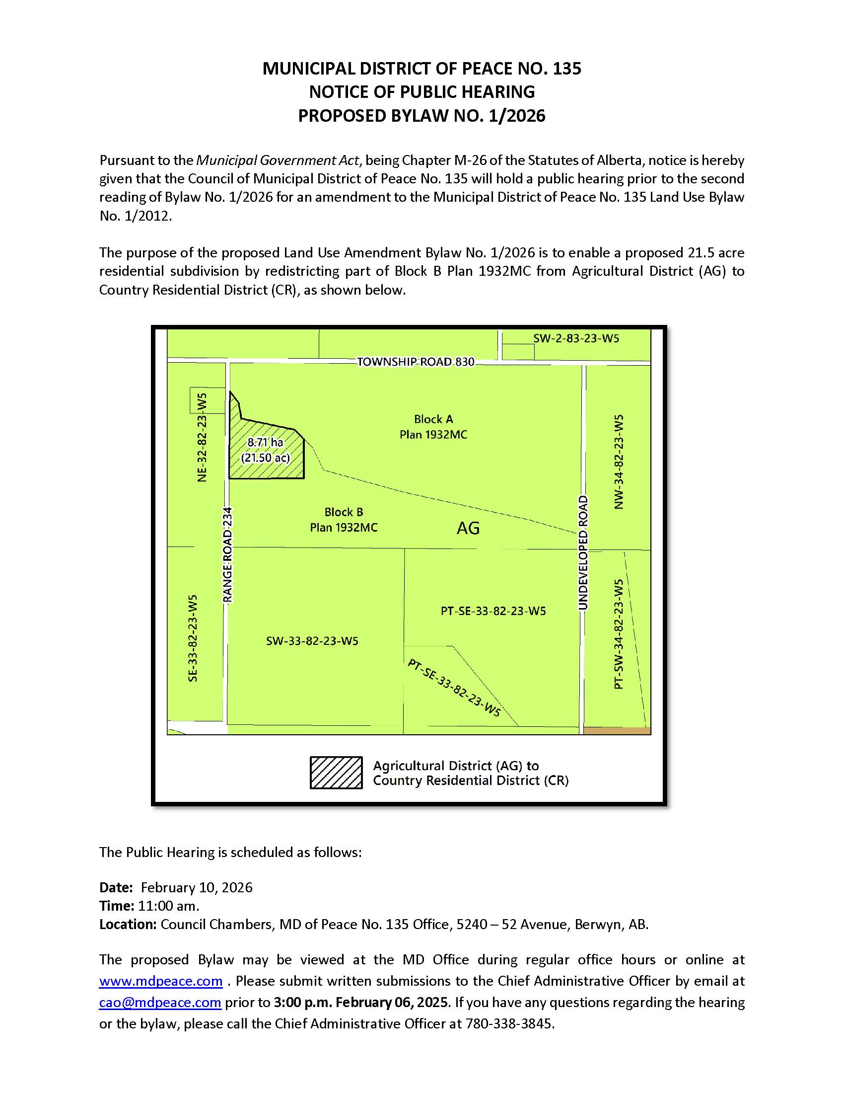 Public Hearing - Proposed Land Use Bylaw No. 1 2026