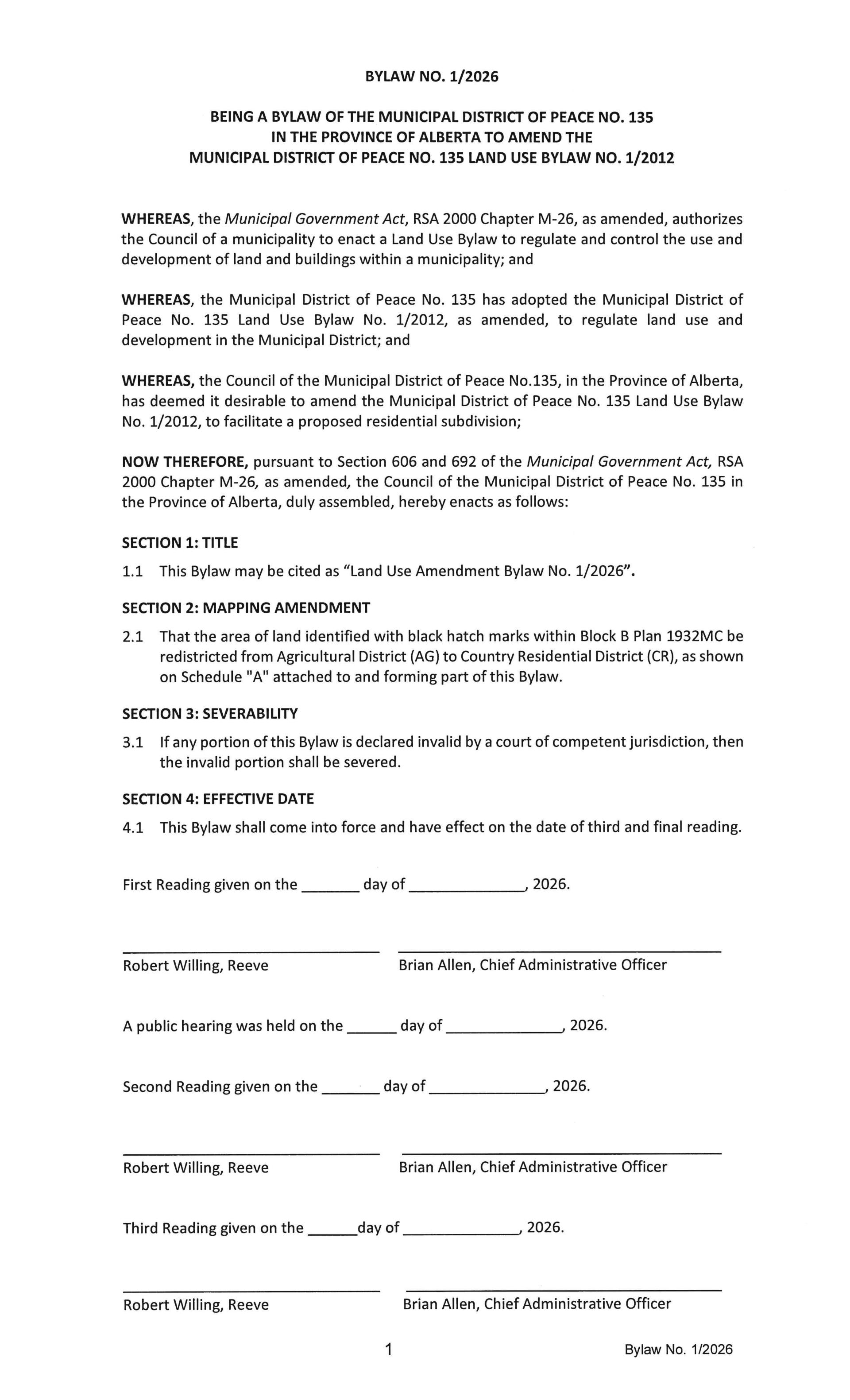 4. Public Hearing - Proposed Land Use Bylaw No. 1 2026