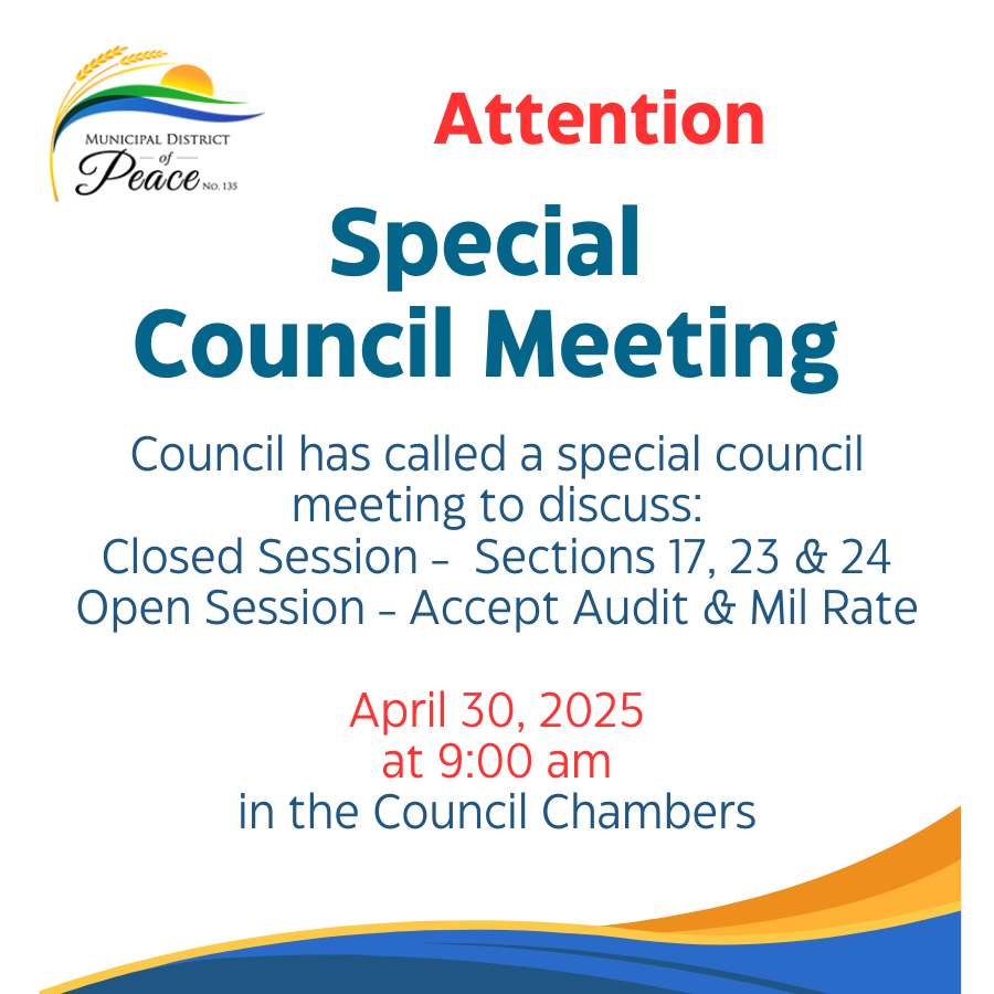 In accordance with MD of Peace No. 135 Fire Protection Bylaw 6/2025 section 12, and under the Forest and Prairie Protection Act, a Fire Control Order is now in effect for lands within MD of Peace No. 135 Jurisdiction located outside the Forest Protection Area.
