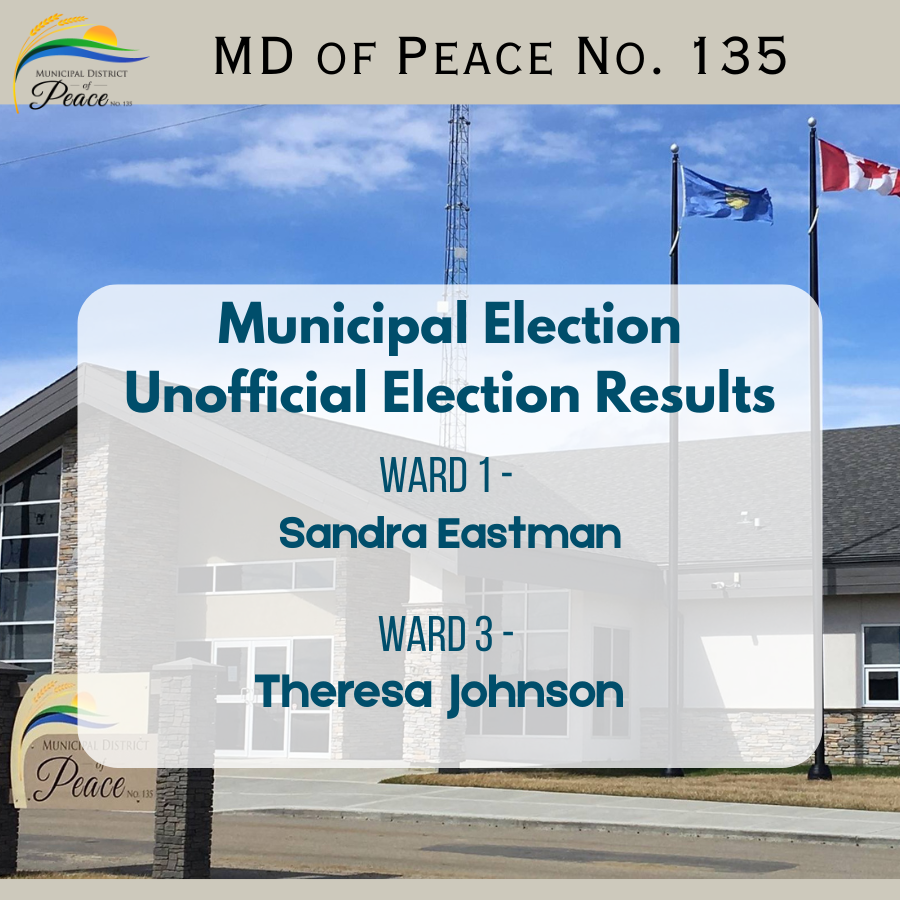 Any questions regarding the 2025 MD of Peace No. 135 Municipal Election, contact the Returning Officer, Dianna Butz by phone 780-338-3845 or email dbutz@mdpeace.com