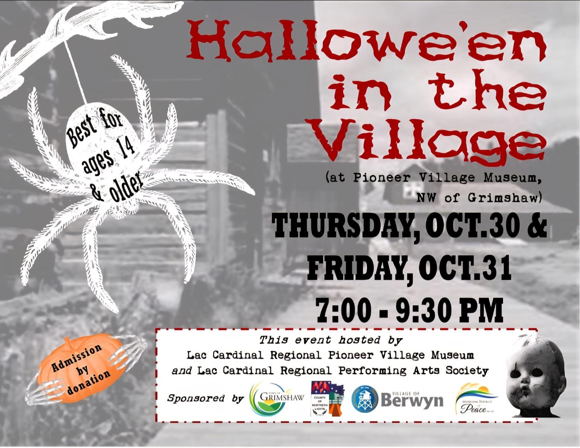 Thursday, October 30, 2025, and October 31, 2025 at the Lac Cardinal Pioneer Village Museum) NW of Grimshaw