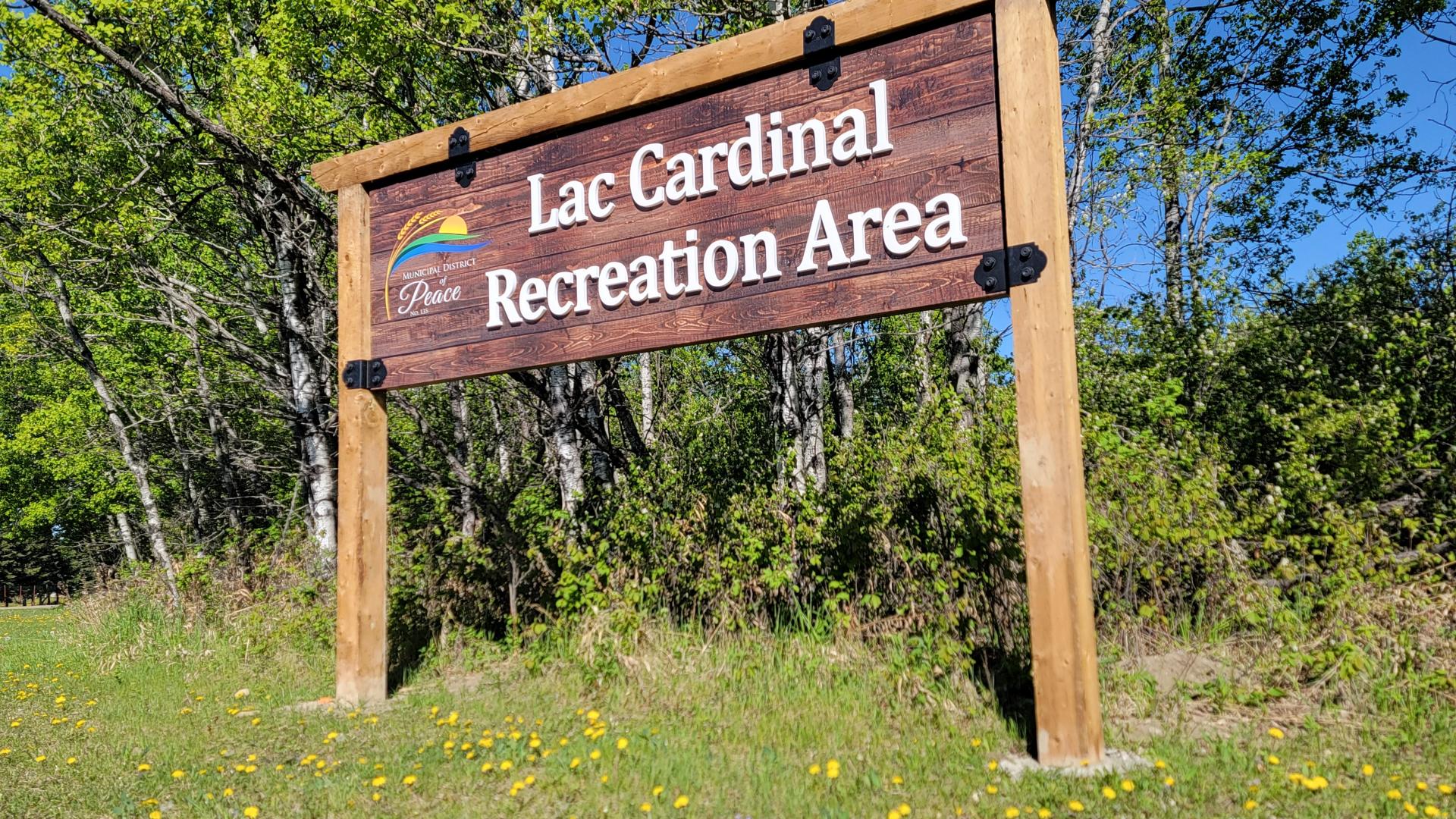 Located 2 miles north and 3 miles west of Grimshaw, along the eastern shore of Lac Cardinal. There are fire pits, a playground area, a camp kitchen, outhouses, and 16 camping sites (no reservations taken). The North Peace Stampede takes place here every year, and as well, there is a large hall with basic amenities which can be rented from the Municipality – see more information on hall rental. The Lac Cardinal Provincial Park is located beside this Recreation Area and is also equipped with camp sites and a boat launch.